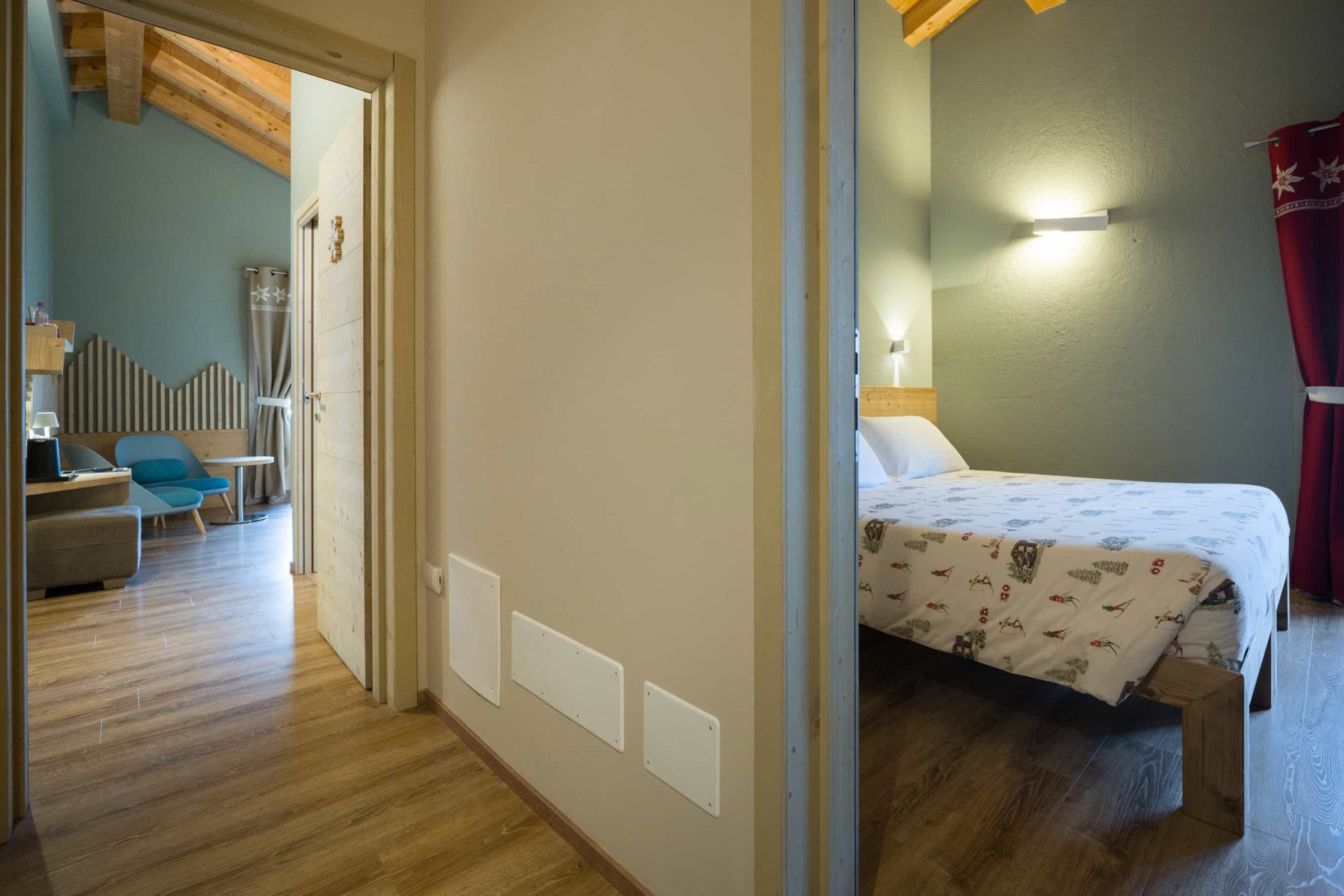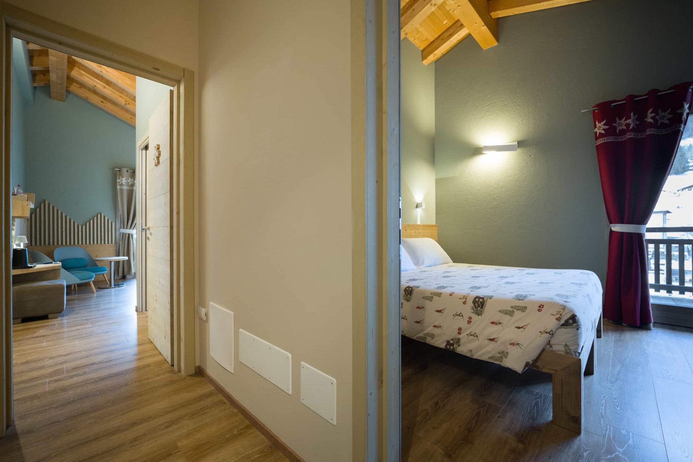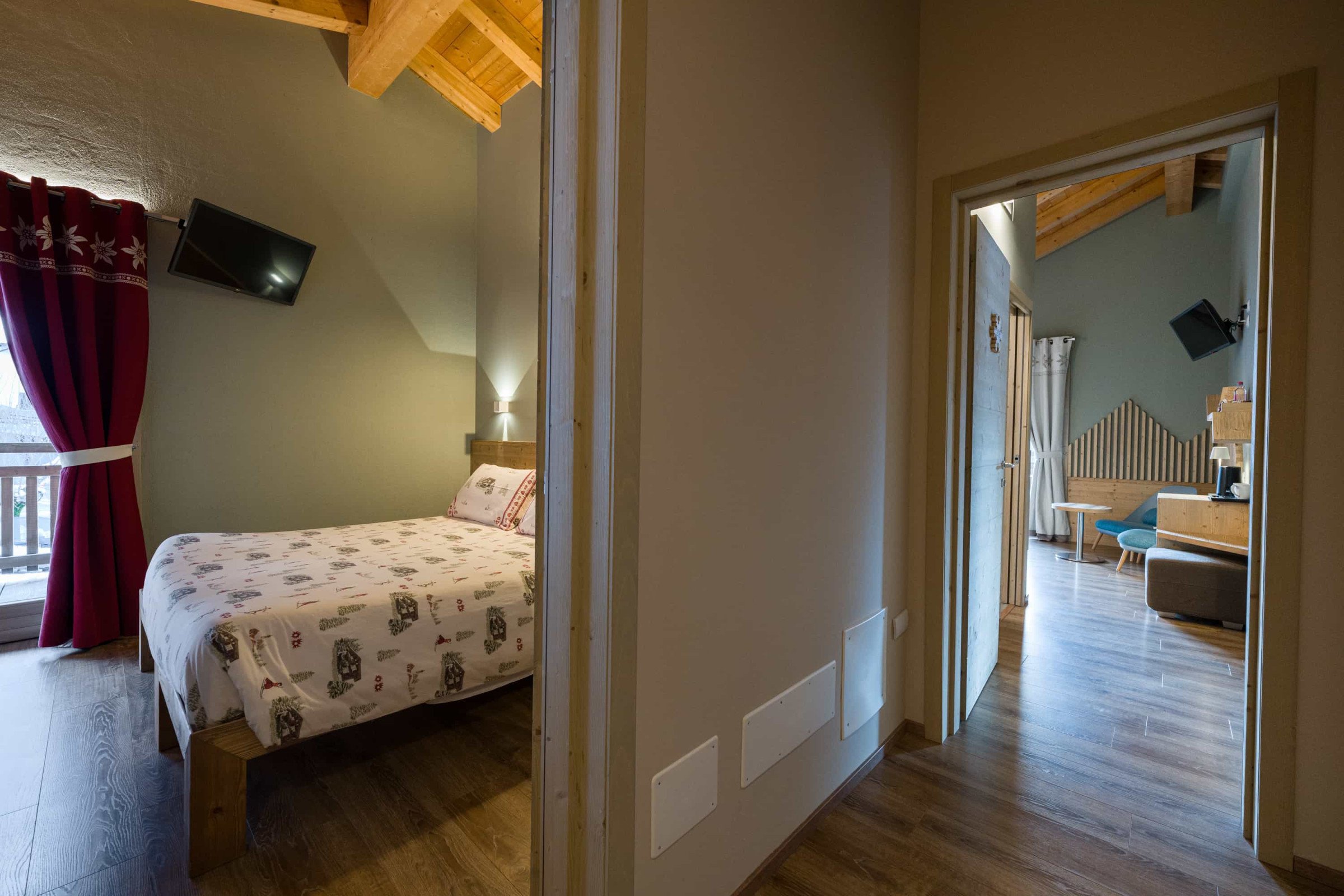 Alloggio composto da due camere, ognuna con bagno; due ampi balconi arredati con vista panoramica.