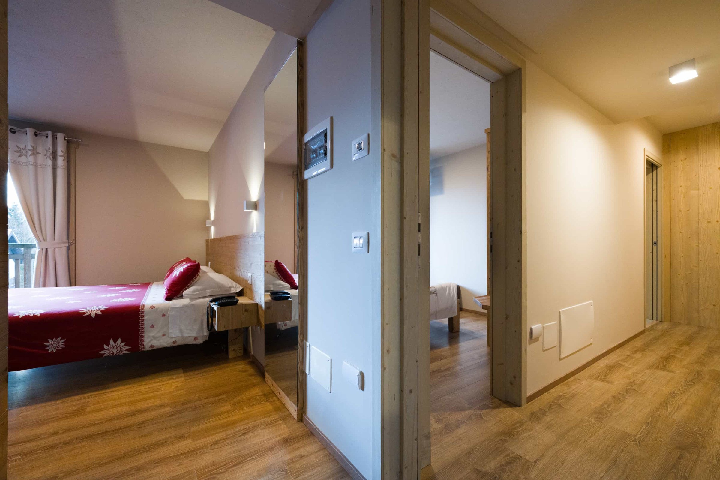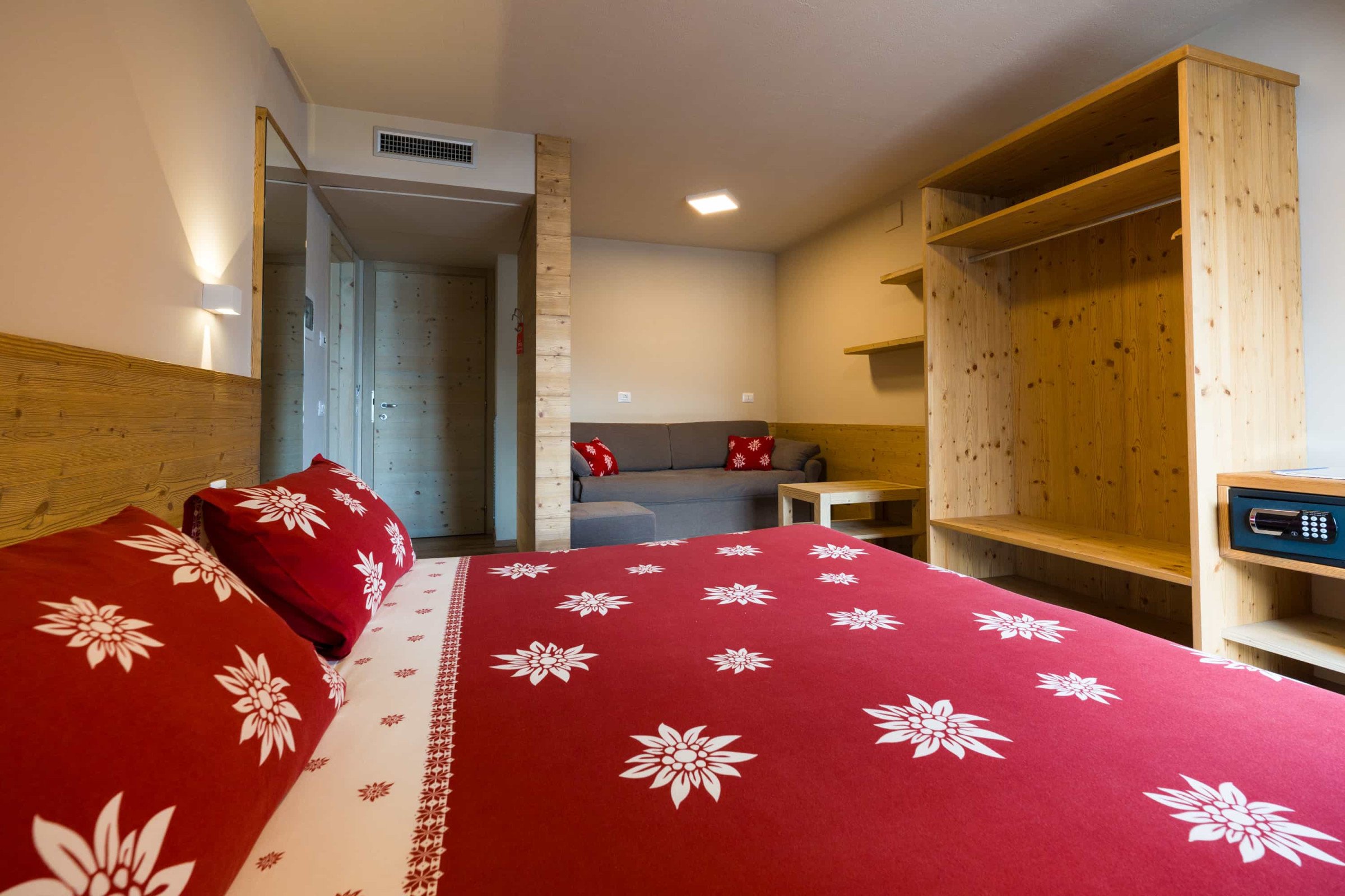 Due camere comunicanti: una matrimoniale, un divanoletto e una camera dotata di due letti singoli.